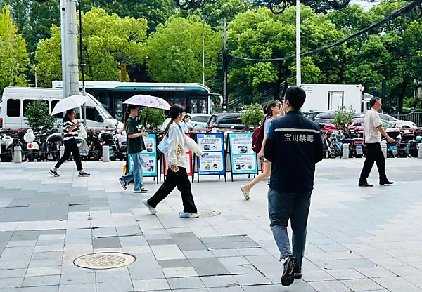 8月初,禁毒社工和禁毒志愿者共同来到殷高西路遇道广场开展禁毒宣传,向过往的路人和附近居民宣传毒品危害知识。