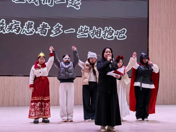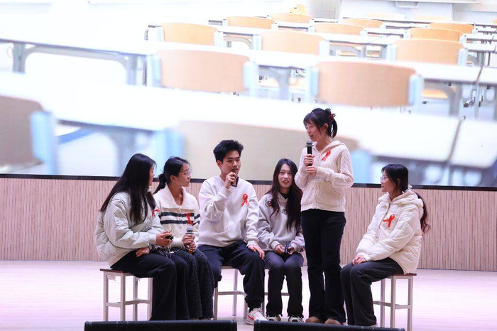 随着灯光聚焦舞台,情景剧比赛正式拉开帷幕。作为学校青春健康教育的重要品牌活动,前期筛选的10支决赛队伍围绕艾滋病的传播途径、预防措施、反歧视理念等核心主题,结合校园生活、社会热点等真实场景进行剧本创作与编排。从误解与偏见的化解,到对艾滋病感染者的关怀与支持;从自我保护意识的觉醒,到主动参与防艾宣传的担当,各参赛队伍以饱满的热情、精湛的演技,将一个个贴近青年生活的防艾故事搬上舞台,既展现了当代大学生的创意与才华,更传递了科学防艾、关爱包容的正能量。