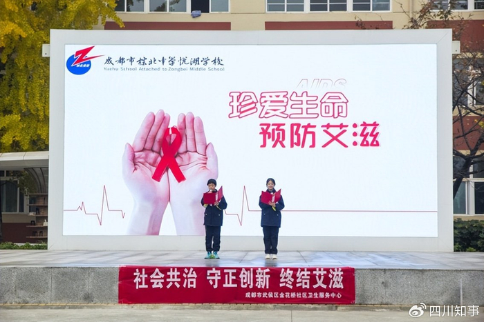 为扎实推进校园健康教育,守护青少年身心健康成长,在第38个“世界艾滋病日”来临之际,成都市金花桥社区卫生服务中心于12月1日走进成都市棕北中学悦湖学校,面向全体师生开展了一场以“珍爱生命 预防艾滋”为主题的公益宣讲活动。