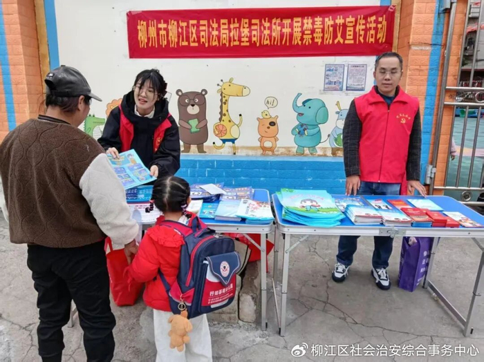 与此同时,在辖区人流量较大的柳江区图书馆旁小公园内及拉堡镇南环路宏发社区旁,拉堡司法所设立了法治宣传“摊位”,通过悬挂横幅、摆放展板、发放宣传资料、现场咨询等方式开展流动宣传。宣传资料包括禁毒防艾知识手册、法律援助指南、民法典相关条款等实用内容。