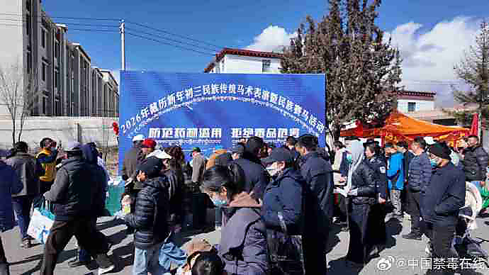 2月20日藏历新年初三,在西藏自治区拉萨市北郊赛马场,各族群众身着盛装、欢聚一堂,共庆传统佳节,共赏民俗盛宴。西藏自治区禁毒办、拉萨市禁毒办联合西藏自治区体育局,在“2026年藏历新年初三民族传统马术表演暨民族赛马活动”现场,开展“防范药物滥用、拒绝毒品危害”主题“马术+禁毒”宣传活动,将民俗体育与禁毒宣传深度融合。西藏自治区广播电视台对本次活动进行全程直播。